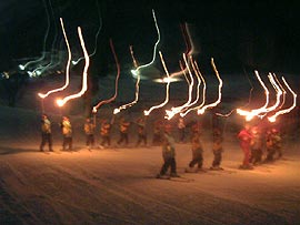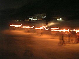 ![]() ▲2004年2月6日 河原城中学校スキー合宿 たいまつ滑走 |