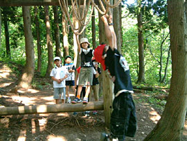 ![]() ▲アスレチック、ぶら下がって綱渡り |