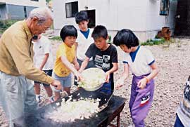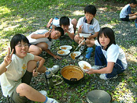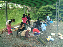 ![]() ▲飯盒でごはんを炊いています |