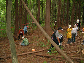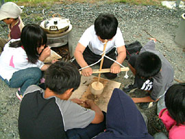 ![]() ▲火熾し体験、なかなか火がつかないぞがんばれ |